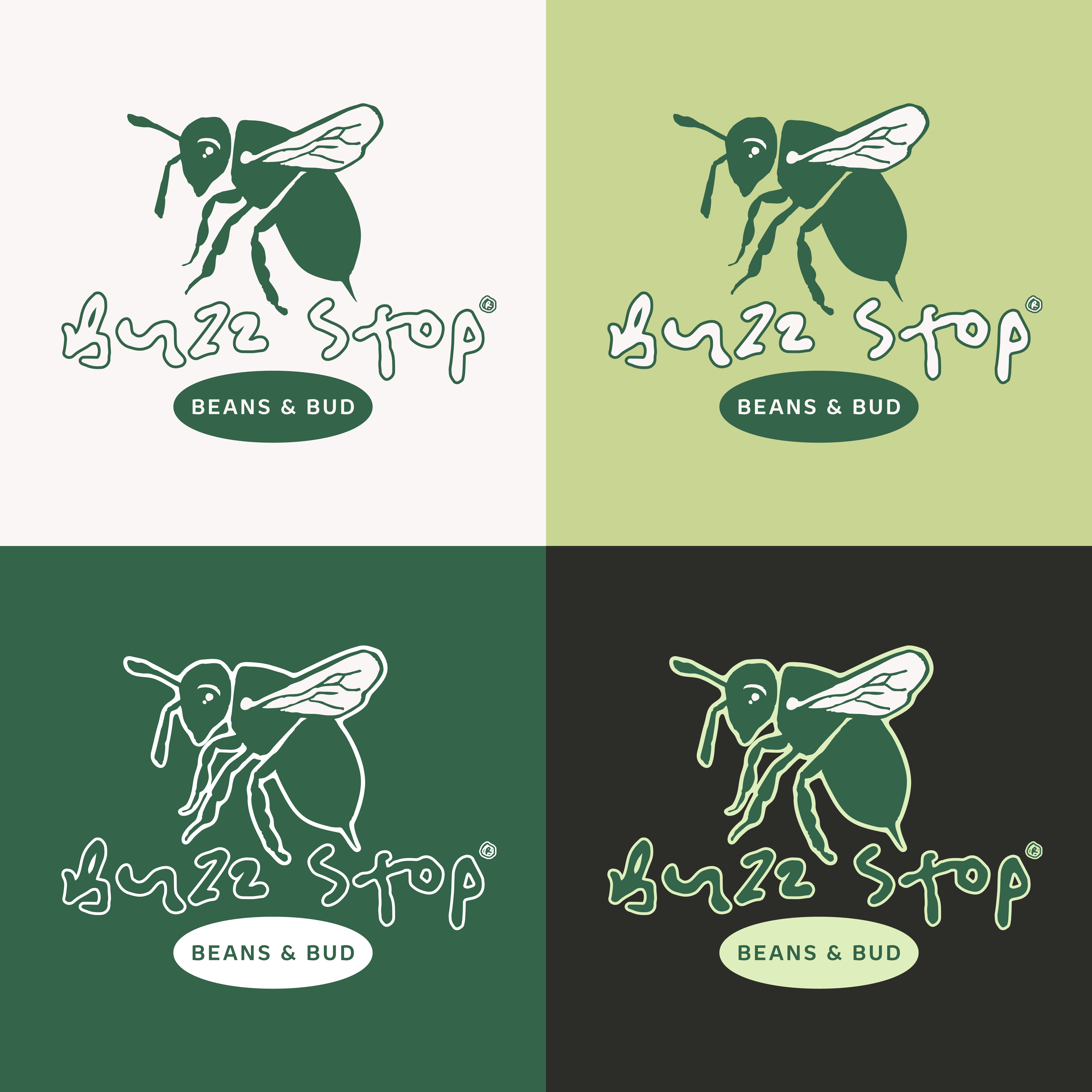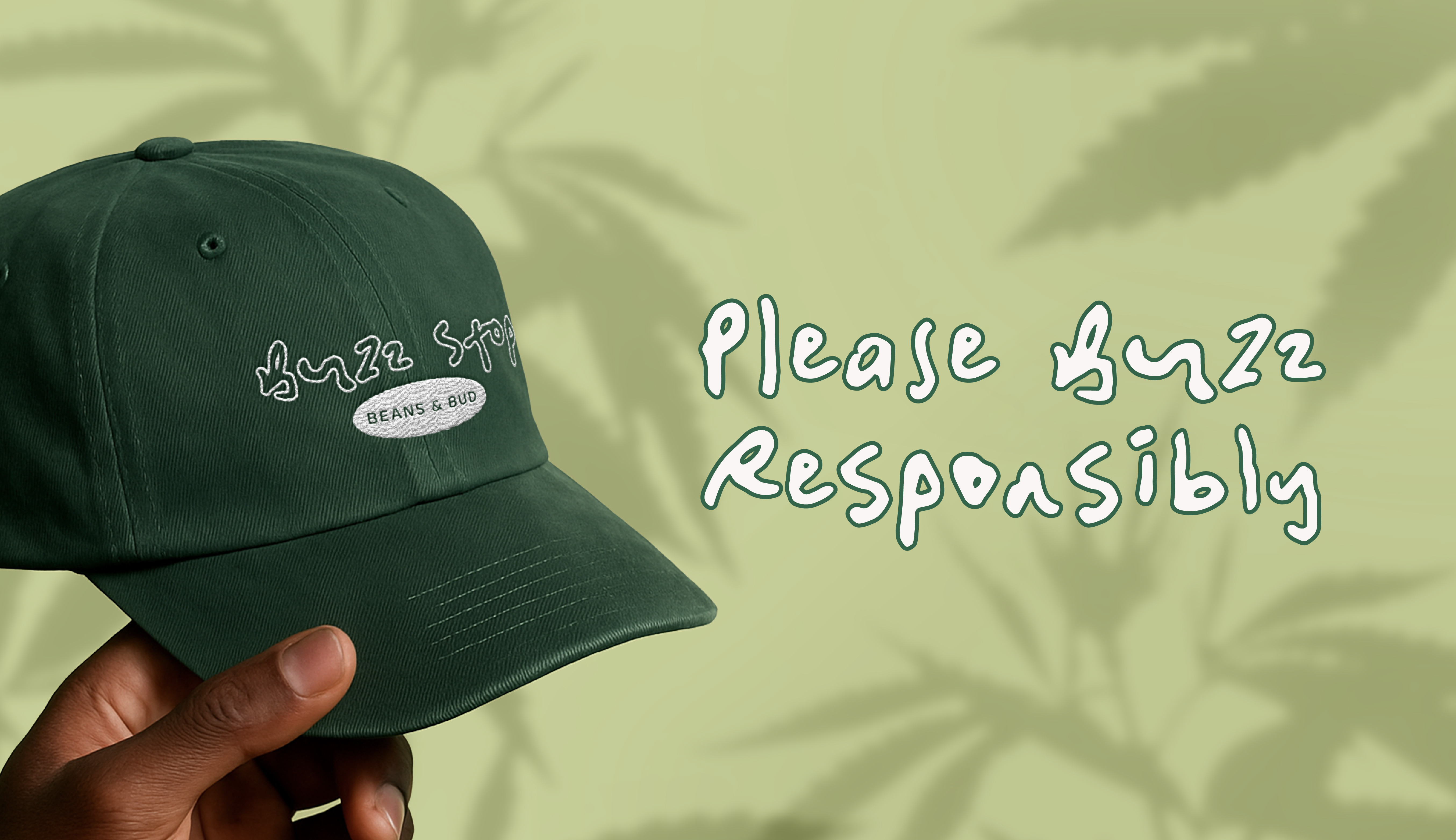 Buzz Stop is a hypothetical café and cannabis dispensary designed as a modern “two-in-one” stop for the daily commuter — your morning coffee buzz before work and your evening cannabis unwind on the way home. The name plays on the idea of a bus stop: a place you pass through daily, built around balance and routine. The tagline “Buzz Responsibly” reinforces intentional consumption and an elevated lifestyle. In contrast to overly polished, AI-driven aesthetics, I hand-drew the bumblebee logo and paired it with the organic typeface Prickly Pear to create a brand that feels warm, playful, and refined. This project showcases my ability to build a fully cohesive brand system from the ground up, including logo design, custom patterns, merchandise, coffee and cannabis packaging, in-store drinkware, and a complete storefront exterior — ensuring consistency across every touchpoint.